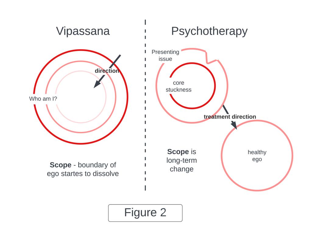 - The primary scope for Vipassana is dissolution of the personality, whereas for psychotherapy it is to enable long-term change.